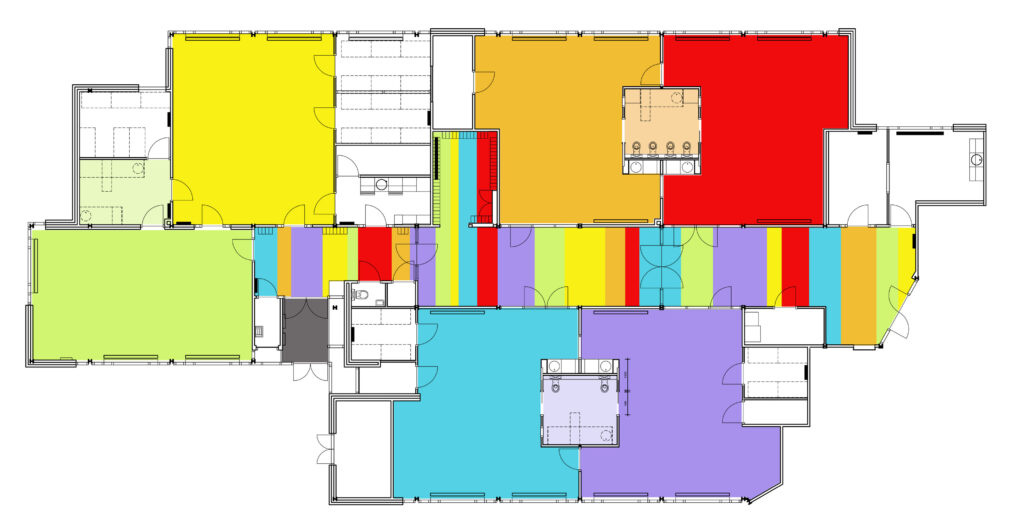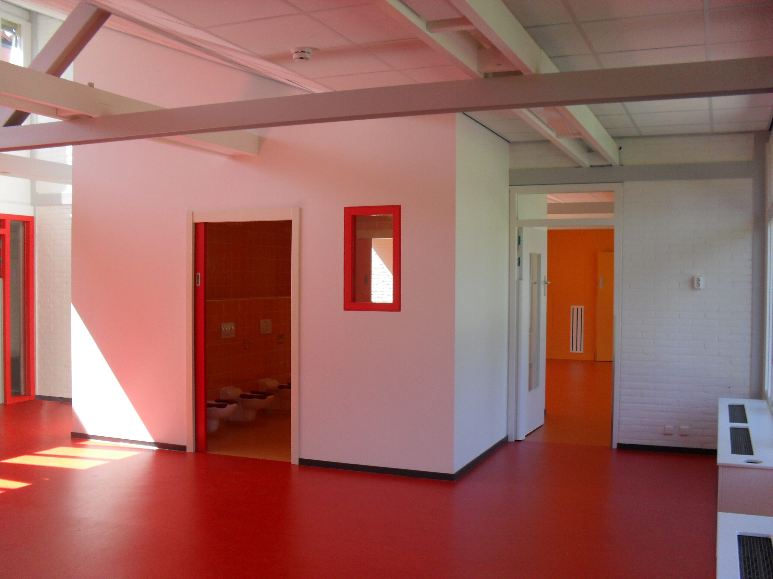 Een vleugel van het scholencomplex Steenen Dijck in Maassluis is omgetoverd tot een kinderdagverblijf voor de SKM. Door minimale ingrepen in deze bestaande vleugel zijn specifieke ruimtes voor het zes groepen tellende kinderdagverblijf gecreëerd. Door de specifieke kleur van elke groep krijgt deze zijn identiteit. De toegangsdeuren naar de groepen zijn overeenkomstig de groepskleur gekozen en zijn zichtbaar in de gezamenlijke speelhal. De gekleurde “loper” in de speelhal maakt het feest compleet!