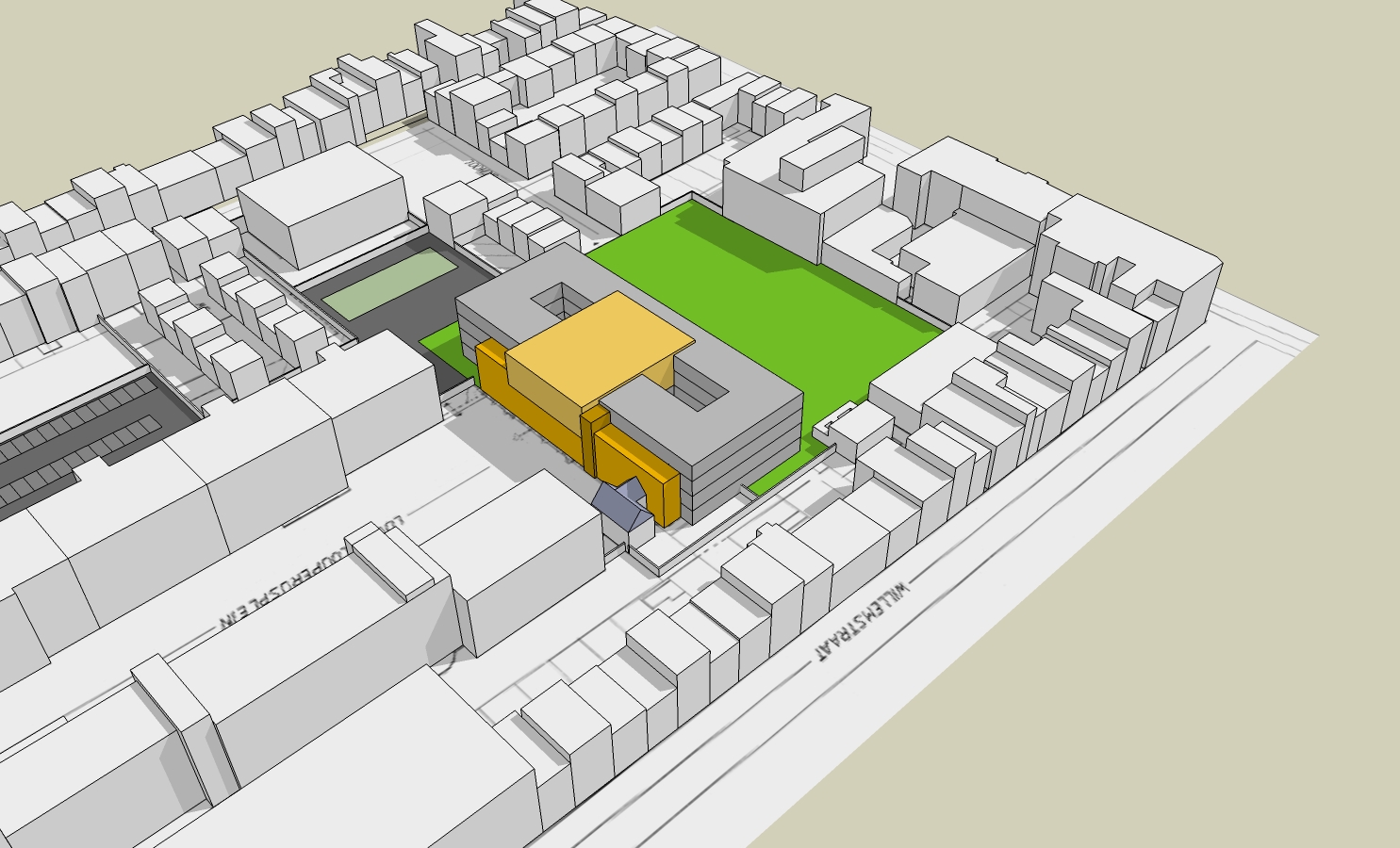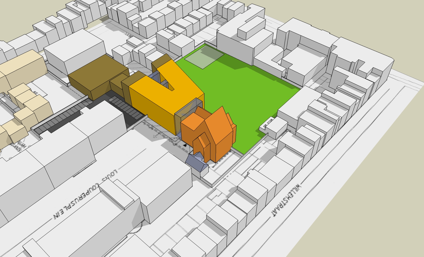 In deze massastudie is gekeken naar de inpassing van het schoolvolume aan het Louis Couperusplein in het centrum van Den Haag.